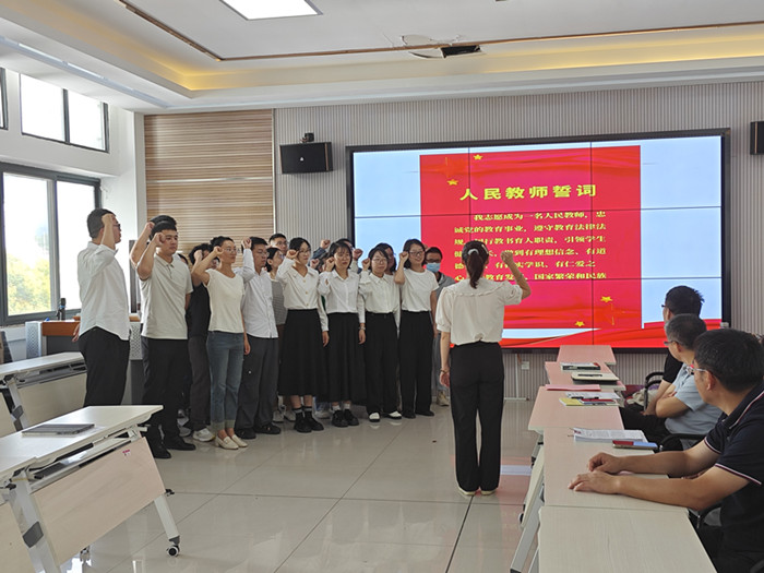 近三年入职的朱亚娟、吴晶晶等17名青年教师身着正装,在“安徽省最美教师”孙露教授的带领下庄严宣誓:“忠诚党的教育事业,遵守教育法律法规,履行教书育人职责……”铿锵有力的誓言,不仅是青年教师对教育事业的郑重承诺,更体现了新一代教育工作者的初心与担当。