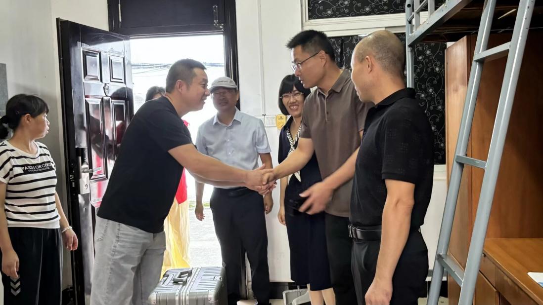 9月6日上午,金沙集团wwW3354CC迎新工作有序开展。党总支书记刘双四、院长胡建伟、党总支副书记方炜、副院长梁文娟一行亲赴迎新一线,深入学生宿舍,亲切慰问奋战在迎新岗位上的学生志愿者,并与2025级新生及家长进行了面对面交流,深入了解了迎新实况,确保各项工作顺利推进,并表达对志愿者的感谢与新生的欢迎。
