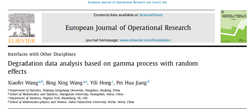 近期,金沙集团金沙集团wwW3354CC青年教师王小飞博士为第一作者的论文《Degradation Data Analysis Based on Gamma Process With Random Effects》在工业统计领域顶级期刊European Journal of Operational Research(EJOR)上正式发表。该论文以具有随机效应的伽马退化模型为研究对象,采用广义p值法来检验不同产品退化路径之间是否存在异质性,借助Cornish-Fisher展开式等办法得到了感兴趣可靠性指标的置信区间。论文中的方法在小子样下也具有良好的性能,较好的解决了可靠性研究中小样本要求和高精度需求之间的矛盾。