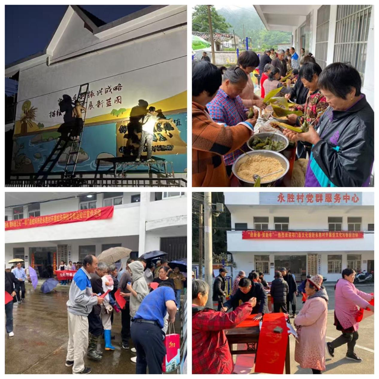 民生福祉是乡村振兴的出发点和落脚点。陈伟龙、张志鹏两位驻村干部始终坚守以人民为中心的发展思想,把保障和改善民生作为核心职责,用心用情用力解决群众急难愁盼问题。陈伟龙到村不久恰逢祁门县政府出台相关政策将农村改厕作为乡村振兴的“关键小事”,此时村里大多都是都是露天旱厕,挖个坑、搭几块木板就完事,夏天臭味能飘半条街;冬天又冷又滑,老人小孩上厕所都得有人扶着。陈伟龙牵头推进改厕,挨家挨户做工作,给村民讲卫生厕所的好处,另外积极争取政策支持,帮着协调材料、施工。后来家家户户都用上了水冲式厕所,组里还装了化粪池,村庄干净无异味,原先的棚厕也拆掉了,村庄的卫生环境和视觉效果都有了显著提升。永胜村在山沟沟里,道路曲折狭长,陈伟龙向学校争取了专项资金在道路关键节点设置了指示牌,这样外人到村都不会迷路,放心大胆在村内通行。陈伟龙还通过申报祁门县巩固拓展脱贫攻坚成果同乡村振兴有效衔接项目,驻村三年来实施了大源组交通安全防护设施建设、永胜村木瓜塘护岸等多个生产生活基础设施建设类项目,实实在在为群众办了好事。张志鹏驻村伊始便遭遇洪涝灾情,他和第九批驻村工作队成员一道驻点驻守、清淤排险,逐户核查房屋、耕地受灾情况,确保无人员伤亡与财产损失。在日常工作中他常态化开展防止返贫动态监测风险排查,完善网格化管理体系,广泛宣传脱贫人口小额信贷、务工交通补贴等政策,筑牢防返贫“安全网”。通过日常走访以及收集村民座谈会上群众的诉求,大源组与舍会组饮水安全质量提升项目、胜丰组生态护岸建设、大源组公交候车亭以及村内主道路防护栏安装相继实施,补齐了民生短板。更是利用校地合作项目资金拓宽了村委会广场进出口道路,极大方便车辆的通行,彻底释放了村委会广场的活动空间,张志鹏先后组织开展了“乡村振兴”主题墙绘、“迎新春・贺新年”送文化写春联、“弘扬传统文化,粽享浓情端午”、送影送戏下乡、村“BA”等惠民活动,还邀请专业机构与专家进村科普及蛇伤预防与救治、吸烟有害健康、中蜂科学饲养及其多元化利用等实用知识,丰富群众精神文化生活,提升了永胜村群众的获得感、幸福感。两任驻村干部的扎根坚守,不仅让永胜村的基础设施彻底旧貌换新颜,更凝聚了人心、焐热了乡情,村民们的心往一处聚、劲往一处使,曾经松散的邻里情变得愈发浓厚,乡村的烟火气里满是团结奋进的暖意,处处洋溢着和谐向上的鲜活生机。