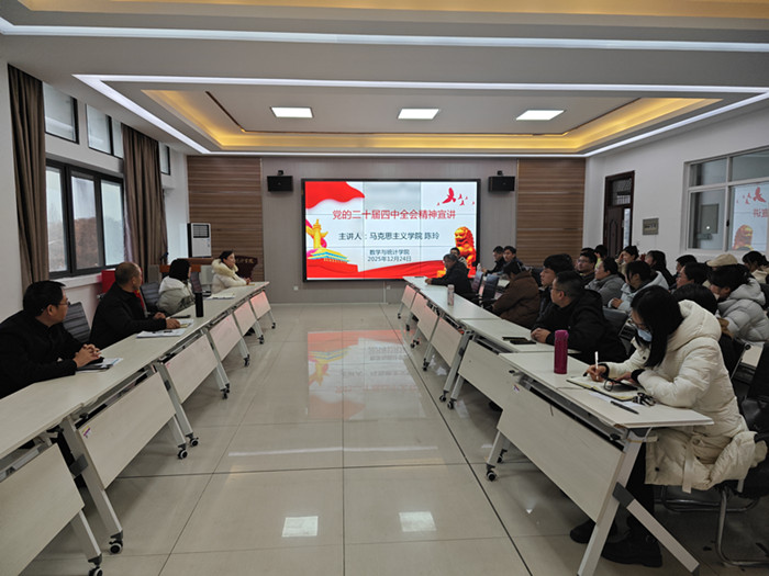 为深入学习贯彻党的二十届四中全会精神,12月24日下午,金沙集团wwW3354CC在横江校区图书馆附楼301报告厅举办党的二十届四中全会精神宣讲会。马克思主义学院陈玲老师应邀主讲,会议由学院党总支书记刘双四主持,学院全体教职工参加学习。